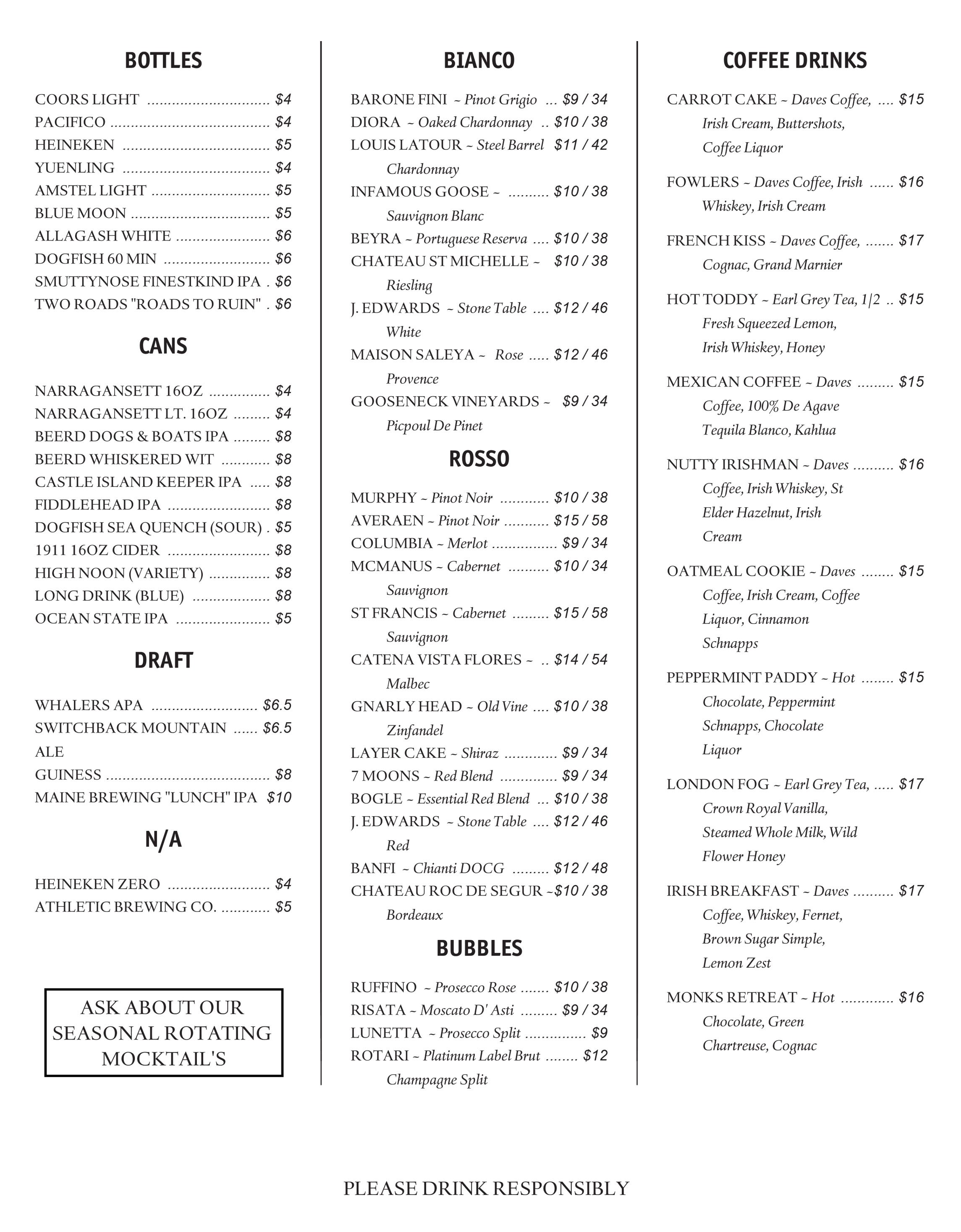 Note: Menu items & prices subject to change without notice.